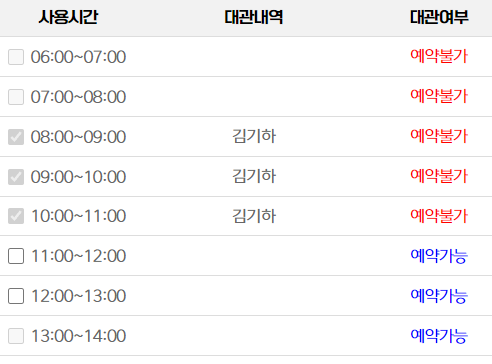 - 해당 예약가능 날짜 안에 사용시간대 리스트 중 예약 가능 불가능 체크