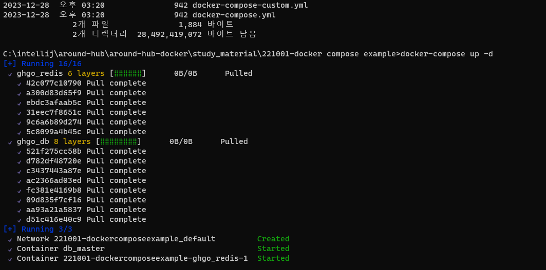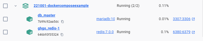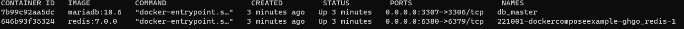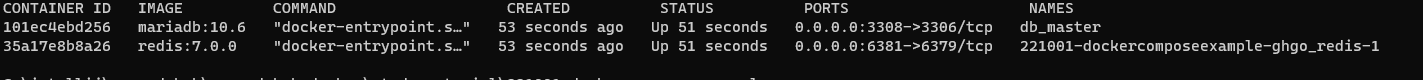 ) db_master 와 ghgo_redis 컨테이너가 생성됨