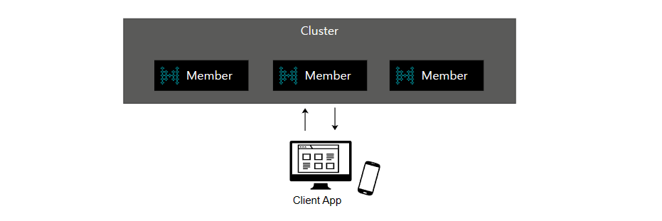 : Hazelcast cluster의 서버가 Client App(Java Application) 과 독립적으로 존재하여 통신을 하게된다.