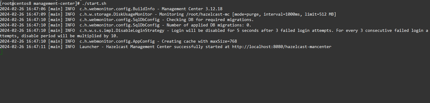- hazelcast와 동일하게 ./start.sh를 실행한다.