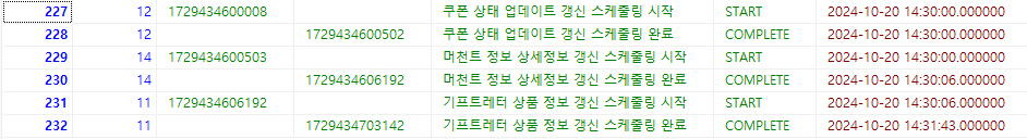 publicEvent 적용을 통해 스케줄링 시작, 스케줄링 완료 , 스케줄링 실패에 대한 로그를 비동기 처리를 해줍니다.