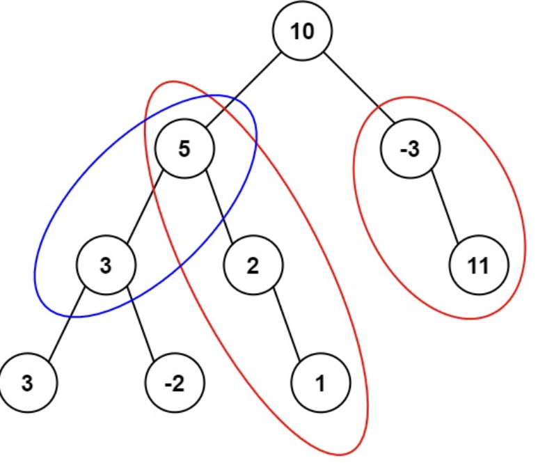 Input: root = [10,5,-3,3,2,null,11,3,-2,null,1], targetSum = 8